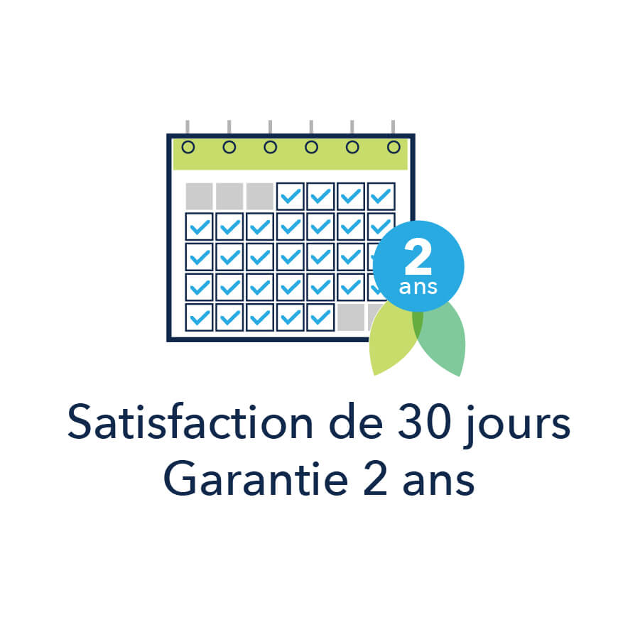 - Satisfaction de 30 jours / Garantie de 2 ans ;